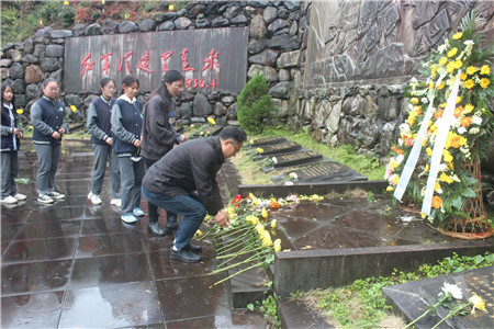 祭扫活动在石屋坑红色教育基地开展,庄严肃穆。学校12位教师党员代表和18位学生团员代表共30人参加活动。大家怀着无比崇敬的心情向革命烈士纪念墓敬献了花篮,齐唱中华人民共和国国歌,向革命先烈默哀三分钟。并有序地向纪念碑敬献了菊花。